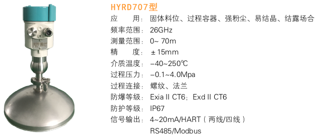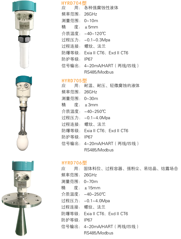 • 產品描述 產 品 說 明: HYRD704 應 用: 各種強腐蝕性液體 測量范圍: 10米 過程連接: 螺紋、法蘭 介質溫度: -40~130℃ 過程壓力: -0.1~0.3MPa 精 度: 5mm 頻率范圍: 26GHz